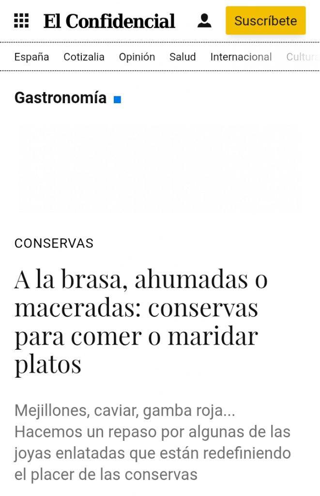 El prestigioso diario digital El Confidencial ha publicado un reportaje sobre los productos gourmet en conserva más destacados del panorama nacional, y nuestro Carpacho de Gamba Roja está entre ellos.